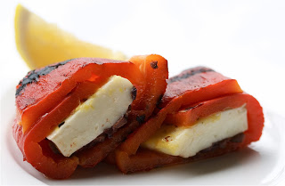 Grill or roast peppers until they soften (enough to be able to wrap around the cheese).