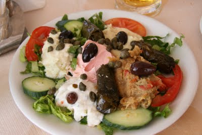 The Culinary Chase’s Note: Any leftover taramasalata may be used as a dressing for tossed salad. The pink dip in the middle of the dish is taramasalata. Caviar Mayonnaise! Delicious!