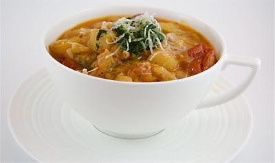 Pistou is a sauce made from cloves of garlic, fresh basil and olive oil. It is a typical condiment from the Provence region of France that can be served with pasta dishes or as a spread for bread.  Some recipes incorporate the pistou into the soup just before serving or it can be offered at the table to be added after the soup is served.  With a salad and baguette, this bean and veggie soup makes a fiber-rich meal.