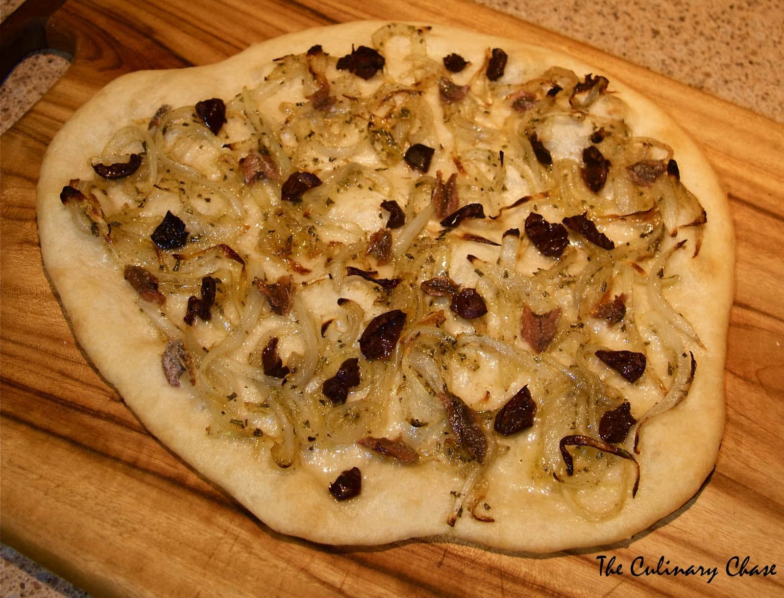 Pissaladière is a simple tart and is sometimes referred to as a white pizza. It originates in the South of France and people buy it to eat on the street. The name is derived from the Provencal word pissala or pissalat which describes a richly-flavored paste made from the salting and fermentation of tiny anchovy-like fish caught off the coast of Nice. Serve in very thin wedges, much smaller than pizza slices, because it’s a snack food rather than a meal.