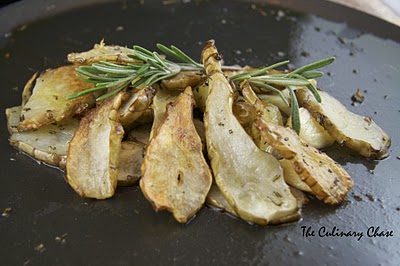 The Culinary Chase’s Note: I love the flavors coming from the roasted sunchokes; a bit like parsnip with a slight smokey hint. When raw, it has a taste similar to jicama or water chestnuts, which makes it a great addition in salads. When choosing a sunchoke, find ones that are moist and smooth, not dry or wrinkled. They’ll keep, refrigerated, for about a week. Just like potatoes, sunchokes can be baked, boiled, steamed, fried, and stewed. However, they will cook faster than potatoes and can easily be turned to mush in a matter of minutes if you do not monitor them closely. Keep your eye on them and remove from the heat source as soon as you can easily pierce with a skewer.