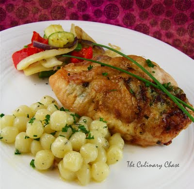 The Culinary Chase’s Note: Delicious and the meat was so tender and moist. Serve this with miniature gnocchi dressed with some of the blue cheese butter and stir-fried veggies.