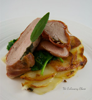 Roasted Pork Saltimbocca with Sarladaise Potatoes & Buttered Spinach
