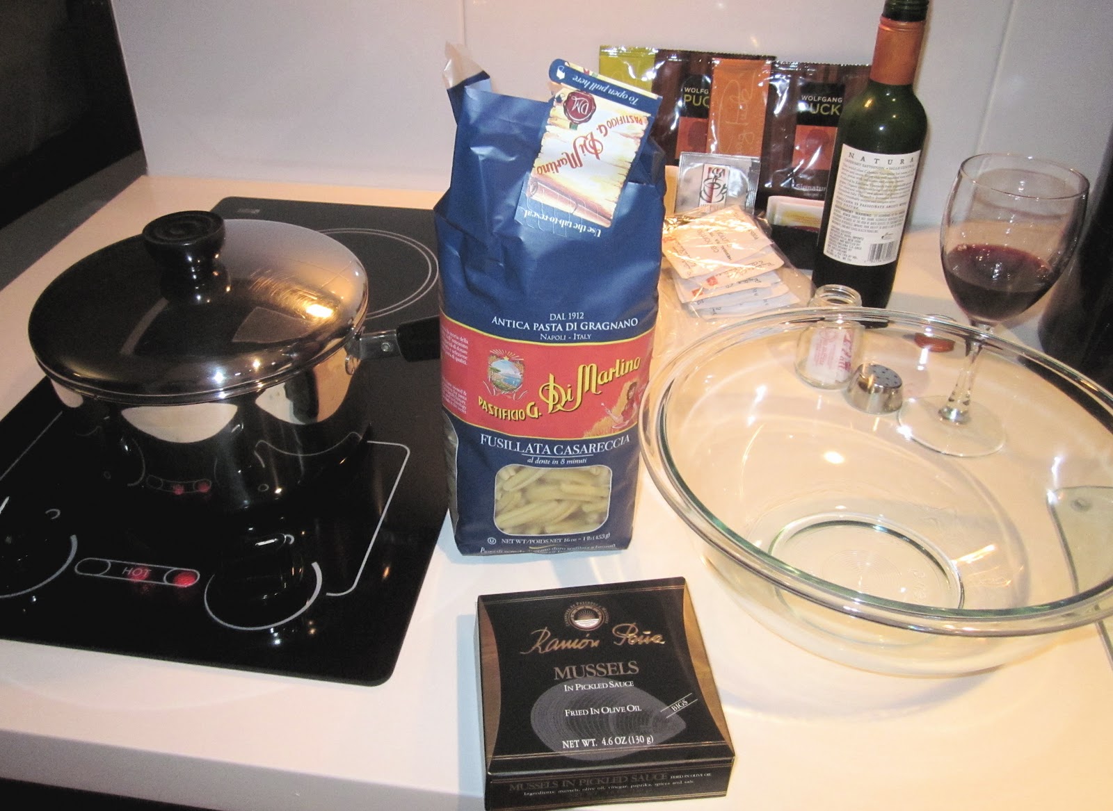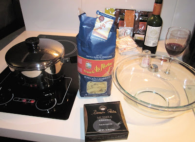 Cook pasta according to packet instructions. Drain pasta and add to a bowl. Carefully add the mussels along with the sauce and gently stir to combine. Add Parmesan and some pepper. You may need to add a bit of olive oil if the sauce is too dry. Serve immediately.