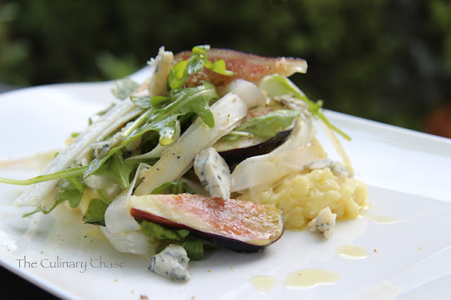 White Asparagus, Rocket, Fresh Figs on a bed of Parsnip Purée