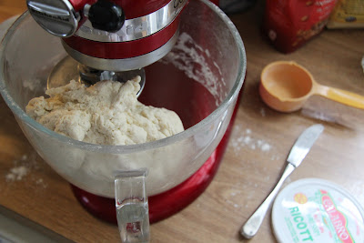 Combine the flour, cheese, egg, and salt in the bowl of a stand mixer fitted with the dough hook and knead on medium speed until the dough comes together in a shaggy, integrated mass that clings to the hook. If the dough looks dry and refuses to coalesce into a ball, add milk by the tablespoon to encourage it. Remove the dough from the mixer and knead it by hand for a couple of minutes to smooth it out. Or, if you don’t have a mixer use the well method by mixing together the egg and ricotta (instead of egg and water) and plopping that down in the center of the well. Otherwise, it works the same way.