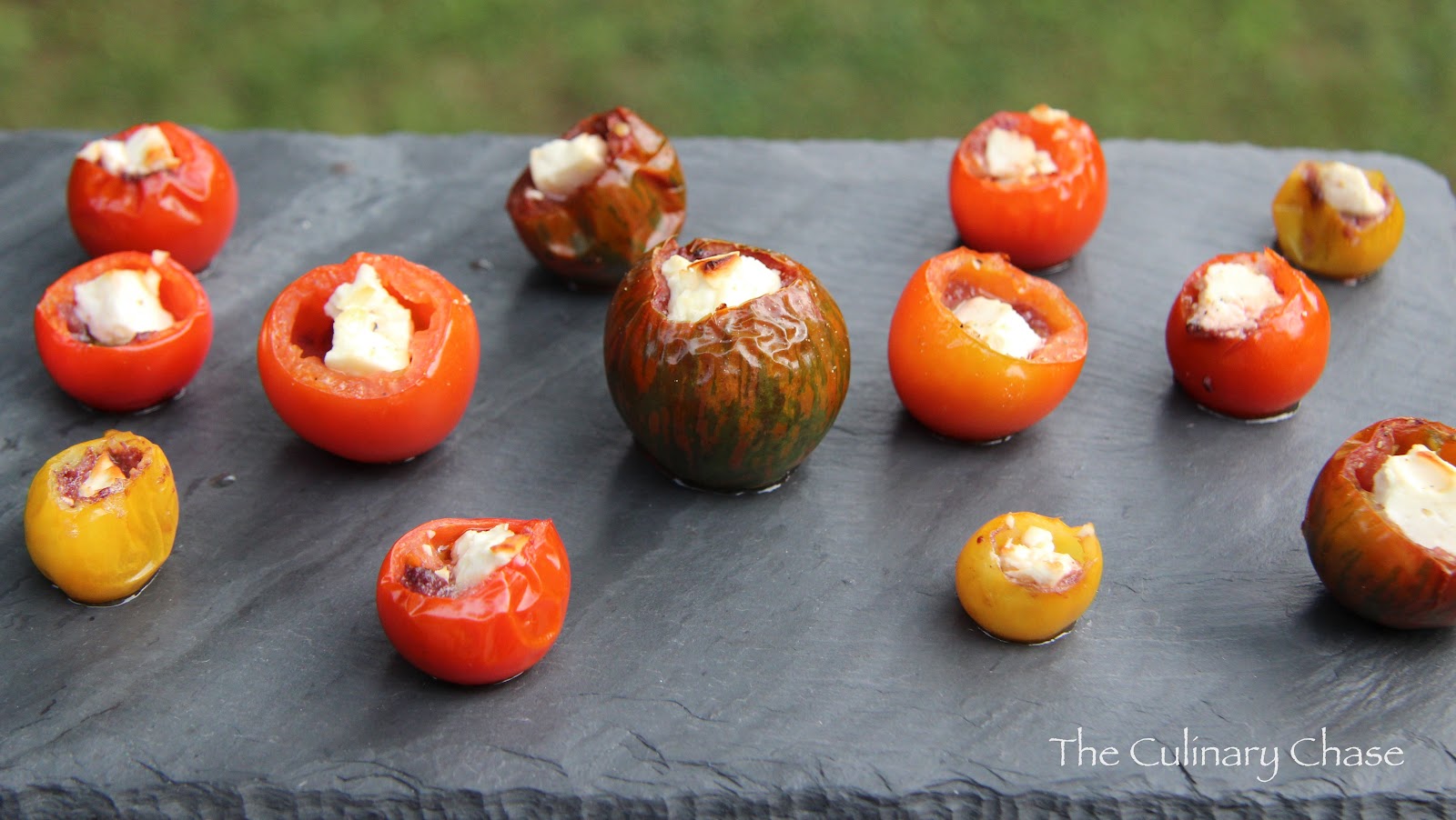 Heirloom Cherry Tomatoes Stuffed with Tapenade and Feta