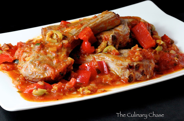 Lamb Chops Calabria Style with Tomatoes, Peppers, and Olives