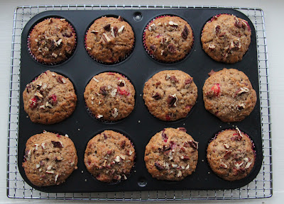 While baking these beauties, I pondered where do you draw the line between a muffin and a cupcake?  While a muffin might be considered healthier than a cupcake, once you start adding ingredients such as chocolate and streusel-like toppings or glazes it starts to resemble a cupcake.  And, when you use cupcake liners for muffins (ahem) then the muffin doesn’t know what it wants to be!  Whatever the case, these are good.