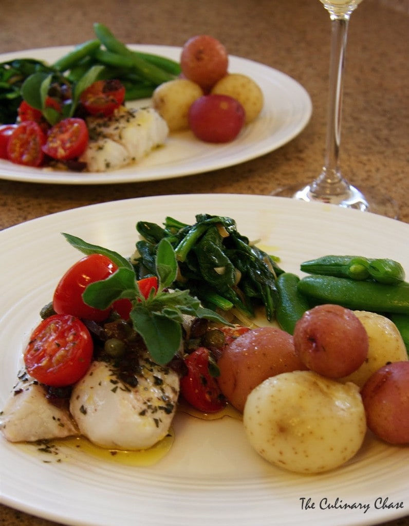 Roasted Cod with Capers, Olives and Tomatoes