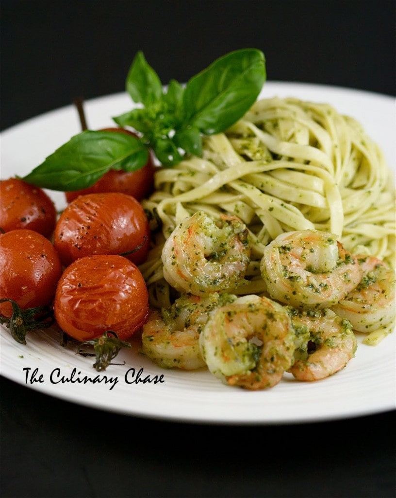 Fresh Linguine with Garlic Shrimp and Homemade Pesto