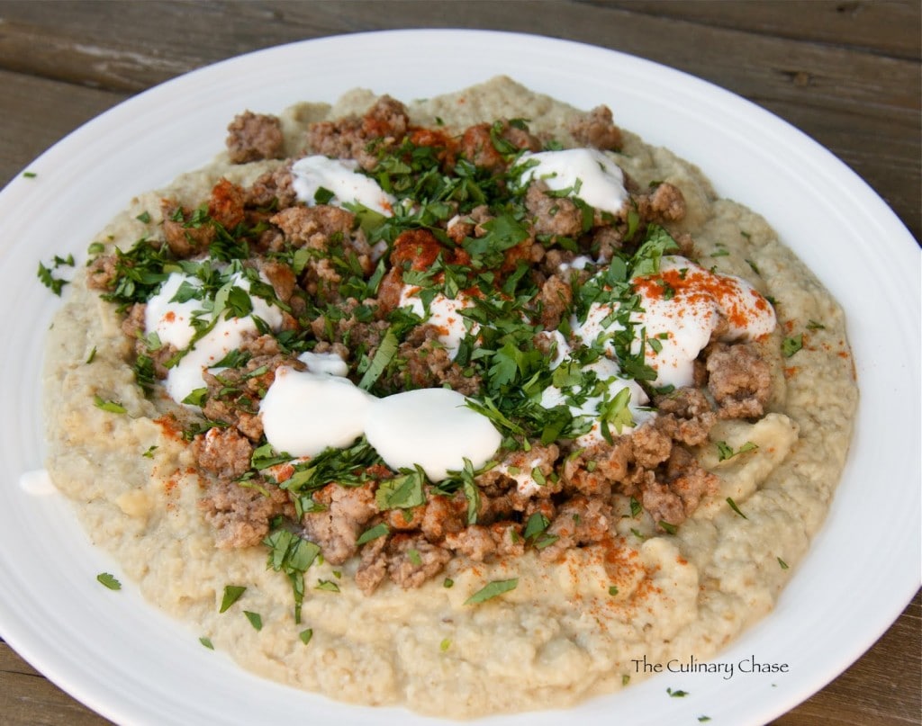 I love how this Baba Ghanoush is decorated with fried lamb and topped with yogurt. Grilling the eggplant until it is charred leaves the flesh of the vegetable with a smoky flavor. Eggplant features a host of vitamins and minerals. Cumin is one of those spices that packs a punch with its nutty peppery flavor…