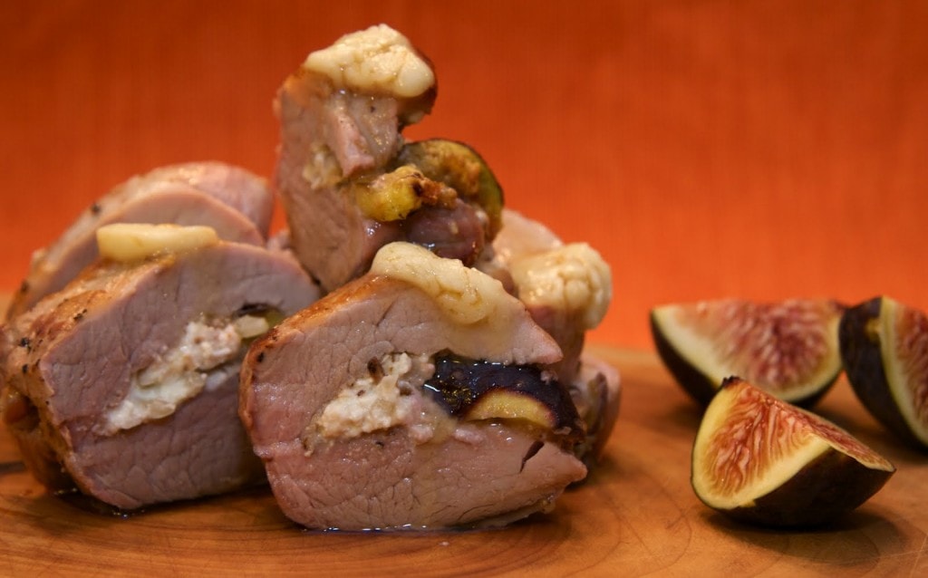 Fig and Blue Cheese Stuffed Pork Tenderloin with Maple Butter