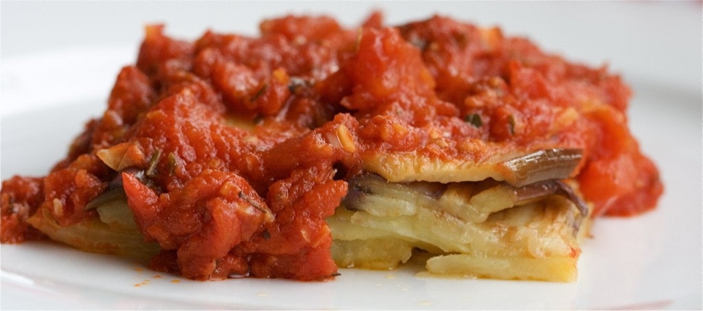 Tumbet is a traditional recipe from Mallorca (Majorca). It’s a rustic vegetable dish that’s like a Provencal ratatouille and is presented in a way that it resembles a pie without a crust. So colorful and full of vitamins and minerals. How could anyone not want to eat this! Serves 4 (as a starter or side…